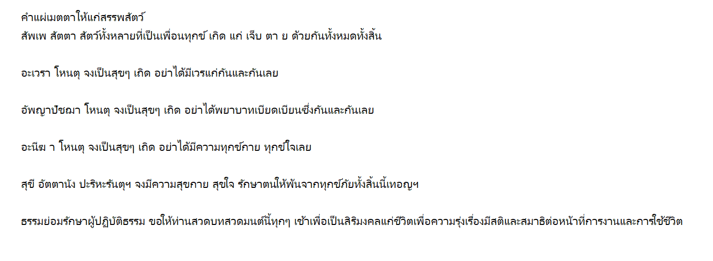 – เกิ ดบุญจากการแผ่เมตตา เมื่อสวดมนต์เสร็จสิ้น มีการแผ่เมตตาแก่ตนเองและเหล่าสรรพสัตว์ย่อมเกิ ดอานิสงส์บุญเกิ ดขึ้น