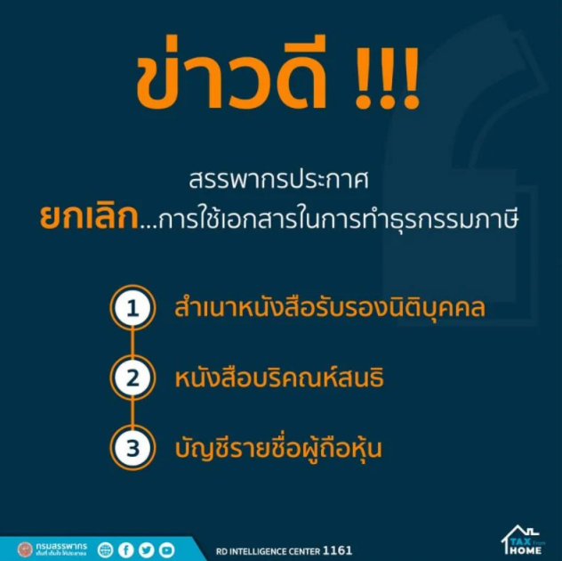 ส ร ร พ า กร ยกเลิกใช้เ อ ก ส า รในการทำ ธุ ร ก ร ร ม ภาษี