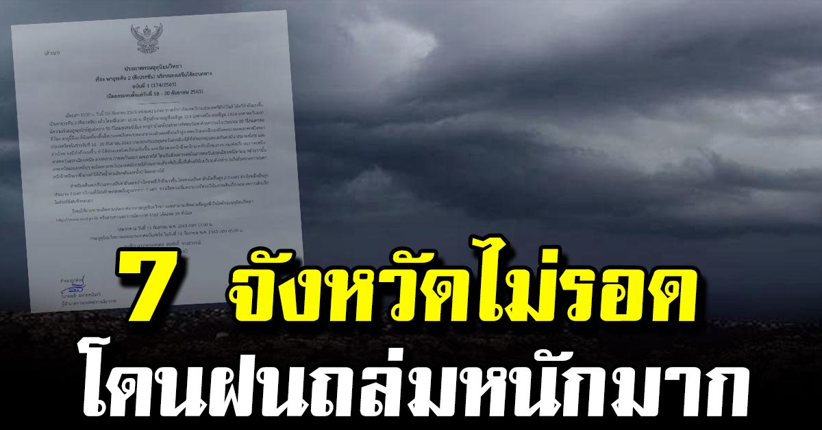 กรมอุตุฯเตือน ร่องมรสุมพาดผ่าน 7 จังหวัด โดนฝนถล่มเต็มๆ