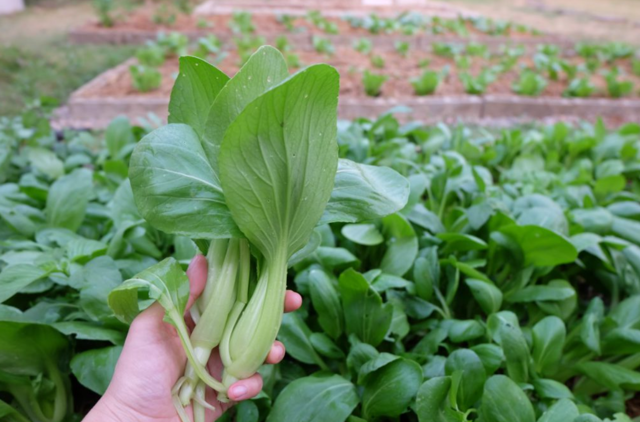 -การเก็บเกี่ยว ควรเก็บเกี่ยวก่อนออกดอก (อายุประมาณ 35-45 วัน หลังปลูก) อย่าปล่อยให้ต้นแก่เกินไป คุณภาพจะต่ำลง ตั ดต้น เหนือระดับดินเล็กน้อย