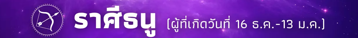 การงานชาวราศีธนูมีเกณฑ์สมหวังเ รื่ อ งการงาน หากทำงานใดอยู่งานนั้นมีโอกาสที่จะประสบความสำเร็จ พ.พาทินี ขอแนะนำให้คุณทำบุญตักบาตรเพื่อเสริมด วง