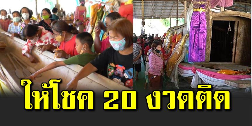 แต่ที่คนมาขัดๆ ถูๆ กันในงวดนี้ คือเรือเก๋งจีน อายุกว่า 300 ปี ที่ให้โชคมาในงวดที่แล้วตรงๆ ถูกกันถ้วนหน้ากว่า 20 งวดติด จนมีคนมาแก้บนด้วยการเอ าชุดไทยมาวางเรียงรายกันเต็มทั้งหน้าเรือละท้ายเรือ