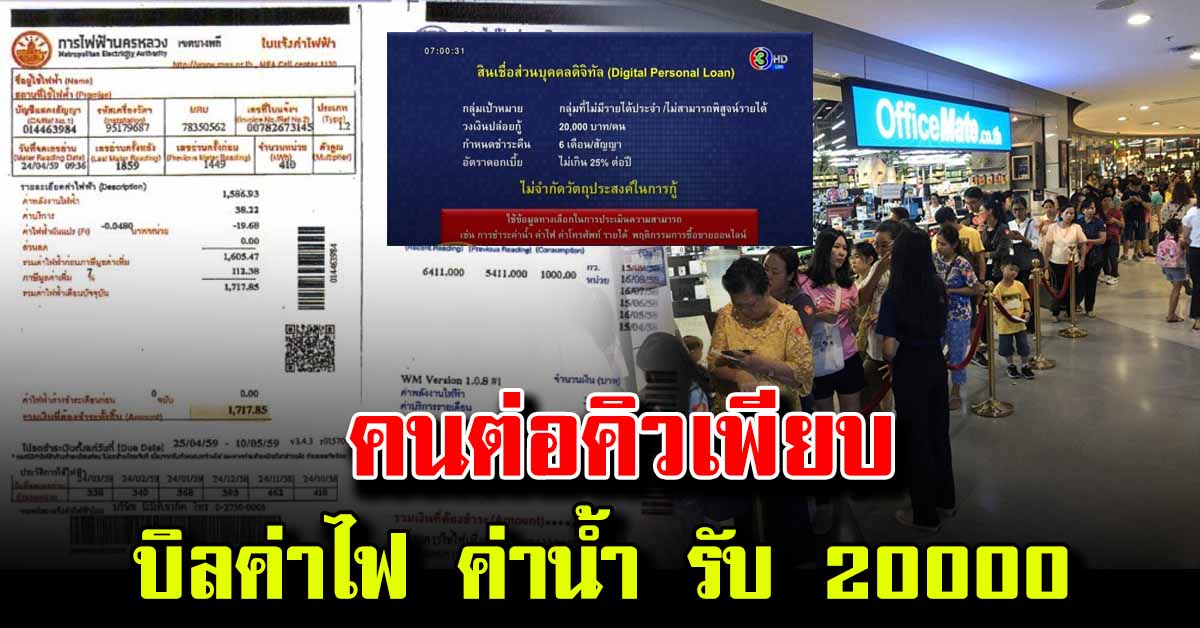 คนแห่ต่อคิว ใช้บิลค่าไฟ ค่าน้ำ รับเงิน 20,000 กันเพียบ