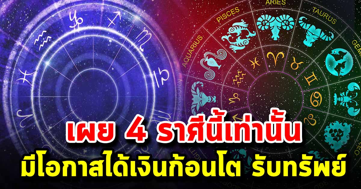 เผย 4 ราศีมีโอกาสได้เงินก้อนโต รับทรัพย์ใหญ่