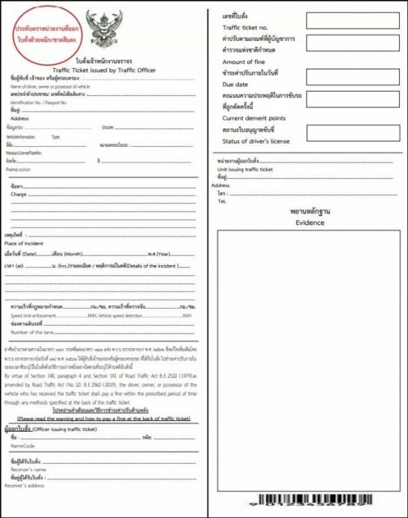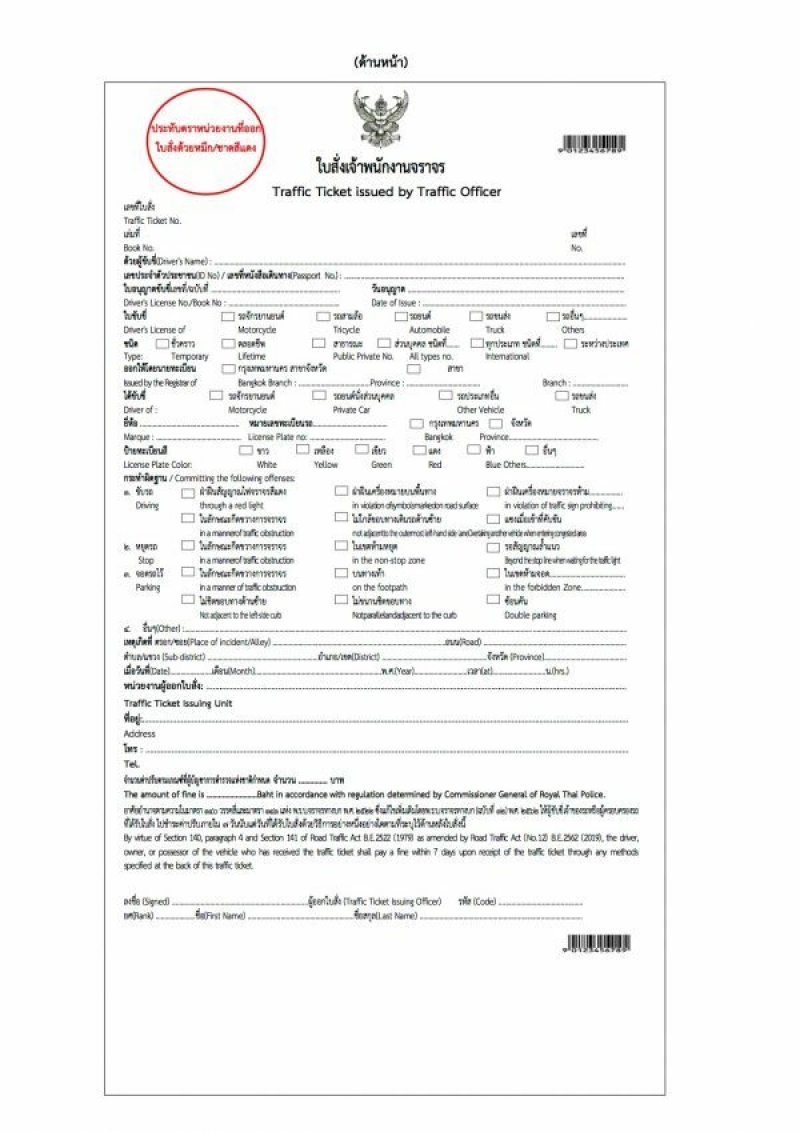 แบบ ใบสั่ง เจ้าพนักงานจราจรมี 2 แบบ คือ