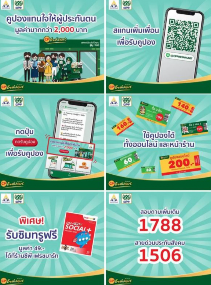 ซีพี เฟรชมาร์ทร่วมกับ กระทรวงแรงงาน โดยสำนักงานประกันสังคม ช่วยลดค่าครองชีพผู้ประกันตนในระบบ มอบคูปองส่วนลดเ งิ นสดส่วนลดสินค้า สิทธิ์ซื้อ 1 แถม 1 และอีกมากมาย