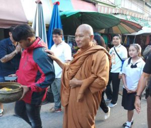 จนเกิดเป็นภาพของพระราชวิสุทธิประชานาถหรือหลวงพ่ออลงกต ติกฺขปญฺโญ เจ้าอาวาสวัดพระบาทน้ำพุ ต้องออกเดินบิณฑบาตเพื่อหาปัจจัยเพิ่มเติมนั่นเอง