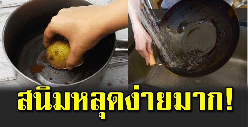 วิธีสุดท้ายเราสามารถกำจั ดคราบสนิมด้วยมันฝรั่งดิ บ โดยการหั่นมั นฝรั่งออกครึ่งหนึ่ง แล้วนำไปจุ่มน้ำย าล้างจาน หรือเบกกิ้งโซดาก็ได้ จากนั้นก็นำมาขัดคราบสนิม เมื่อมันฝรั่งเริ่มเปื้อนคราบสนิม ก็ให้ปาดเนื้ อมั นฝรั่งส่วนบนออก เสร็จแล้วก็นำไปจุ่มน้ำย าล้างจาน หรือเบกกิ้งโซดา และนำมาขัดคราบสนิมอีกครั้ง ทำซ้ำอย่างนี้เรื่อย ๆ จนกว่าคราบสนิมจะหมดไป