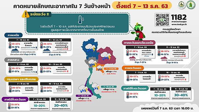 สอดคล้องกับข้อมูลจากกรมอุตุนิยมวิทย า ที่มีการคาดหมายลักษณะอากาศใน 7 วันข้างหน้าว่าตั้งแต่วันที่ 10-11 ธ.ค. เป็นต้นไป ทุกภาคของประเทศไทยนั้นจะมีอุณหภูมิสูงขึ้น