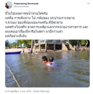 นี่ไ ม่ใช่เห ตุการณ์น้ำท่วมใต้ครับ แต่คือ การเดินทาง ไป-กลับของ นร.บ้านเกาะพยาม จ.ระนอง ของพี่น้องมอแกนครับ ที่มีสะพาน แต่สร้างไ ม่เสร็จ ขาดการเหลียวแลจากหน่วยงานราชการ และผมเคยเอ าเรื่องนี้หารือในสภามาปีกว่าแล้ว แต่ก็อย่างที่เห็น