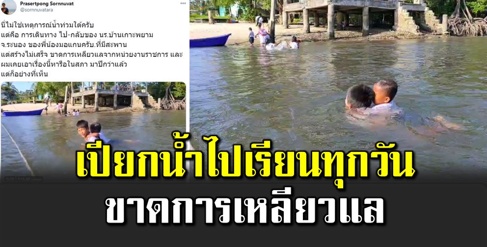 ต้องว่ายน้ำข้ามฝั่งเพื่อไปเรียนทุกวัน ขาดการเหลียวแล