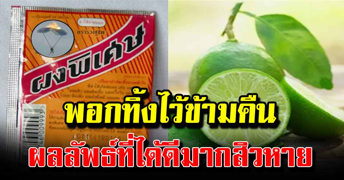 1. ใช้ผงพิเศษ 2 ซอง เทใส่ภาชนะไว้ นำมะนาวบีบลงไป 1 ลูก ผสมให้เป็นเนื้อเดียวกัน