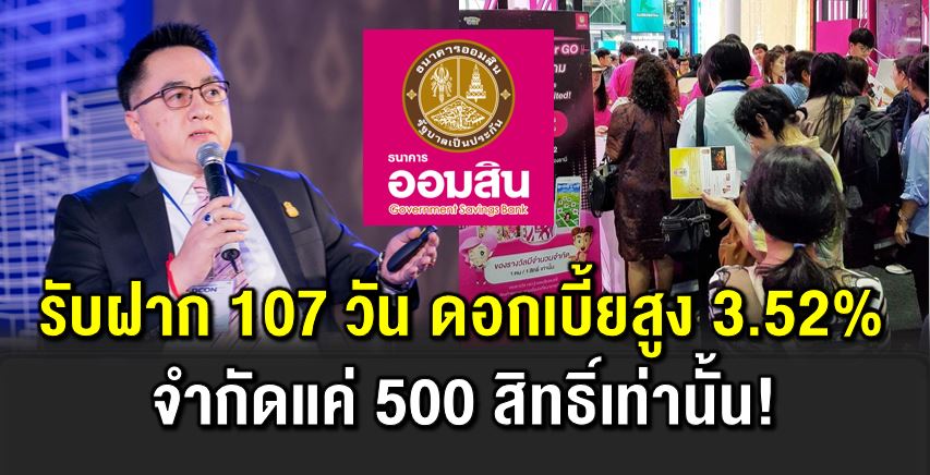 นาทีทอง ออมสิน เปิดรับฝาก 107 วัน ดอกเบี้ ยสูง 3.52%
