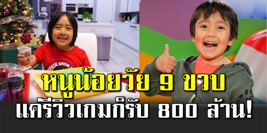 หนูน้อย 9 ขวบ ขึ้นแท่นยูทูบเบอร์รายได้สูงสุด แค่รีวิวเกมก็รับ 800 ล้าน